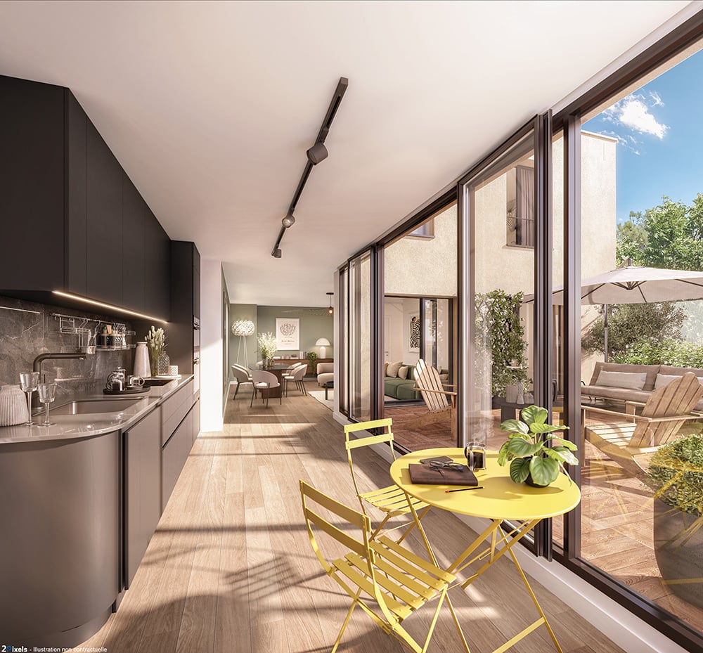 VIVRE LE PARIS CHAMPETRE ET AUTHENTIQUE. Le quartier Saint-Blaise et ses trésors cachés du 20e arrondissement de Paris seront votre prochain lieu de vie. Petit coin de tranquillité rare dans Paris, connu pour ses rues paisibles et bucoliques, un véritable enchantement pour les amoureux de verdure et de l’esprit campagne. Cette nouvelle adresse parisienne, proche du Père Lachaise, d’écoles, d’espaces verts et de nombreuses boutiques et commerces est le lieu de vie idéal. Abritant 12 appartements de standing allant du 2 au 4 pièces, organisés et fonctionnels. Chaque bien propose des finitions haut de gamme et des matériaux nobles. Les biens au rez-de-chaussée bénéficient d’un jardin privatif et profitez de moments de détente sans pareil grâce aux terrasses. ACCES Les écoles et collèges à 5 minutes à pied. Un panel de commerces de bouche en pied de résidence. A 2 minutes de lieux mythiques de la vie parisienne. Le cimetière du Père Lachaise à 10 minutes. L’arrêt de bus « Pyrénées – Bagnolet » (lignes 26, 64 et 76) L’arrêt de tramway « Marie de Miribel » (ligne T3B) La station de métro « Alexandre Dumas » (ligne 2)