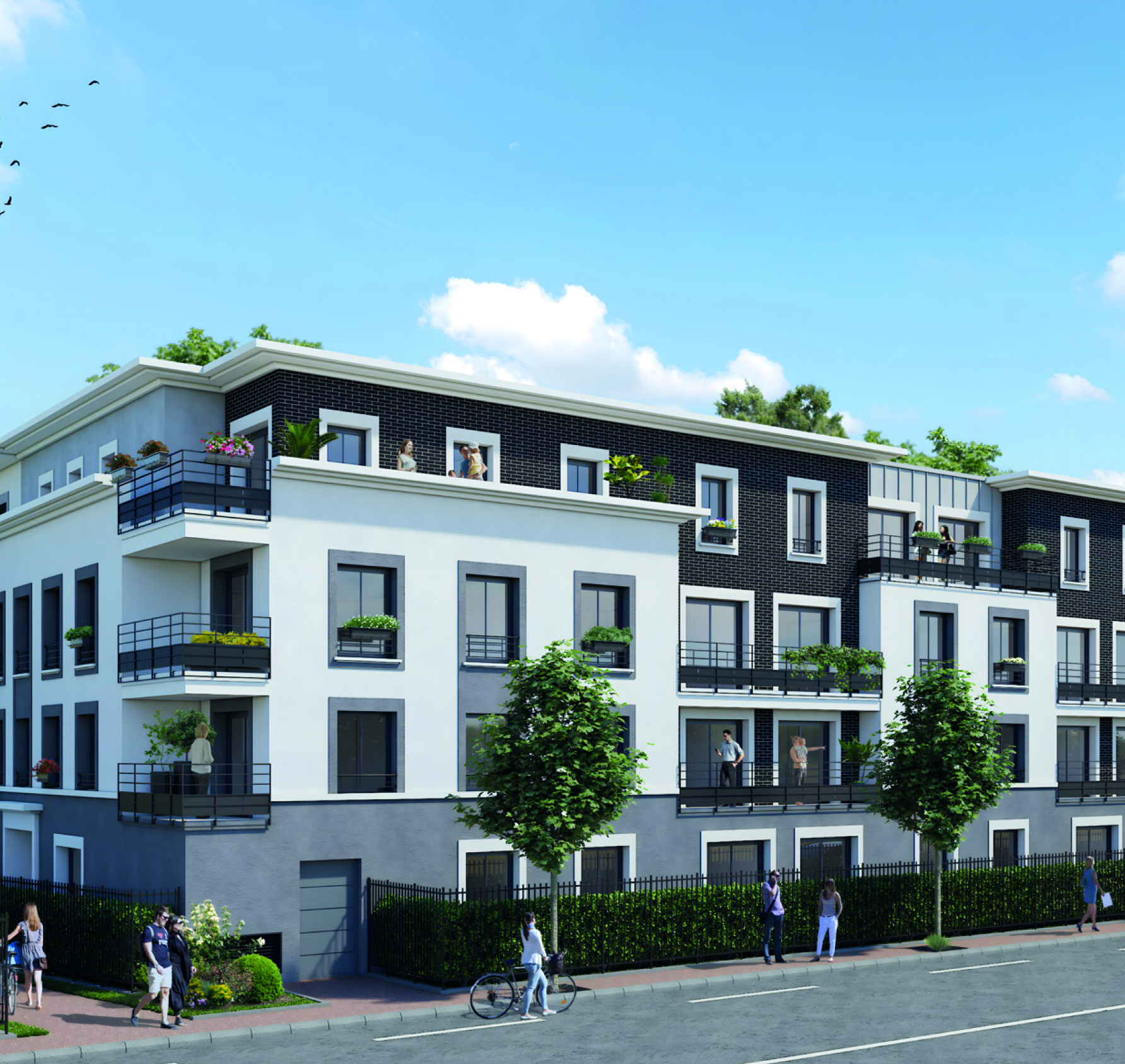 Les 22 logements proposés à la vente sont tous prolongés d'un espace extérieur — terrasses, balcons ou jardins. . L'immeuble s'élève en R+2 + sous-sol.