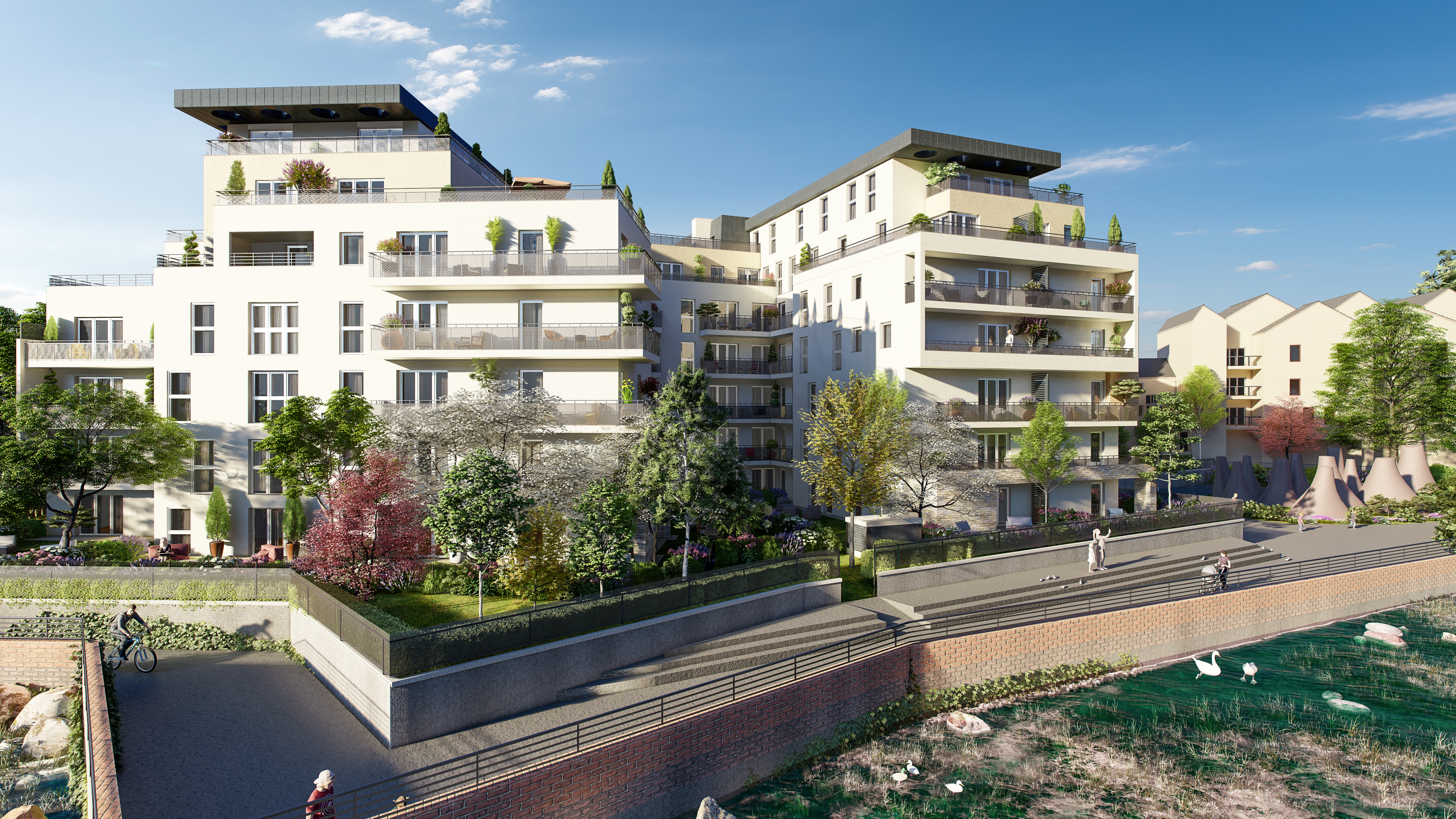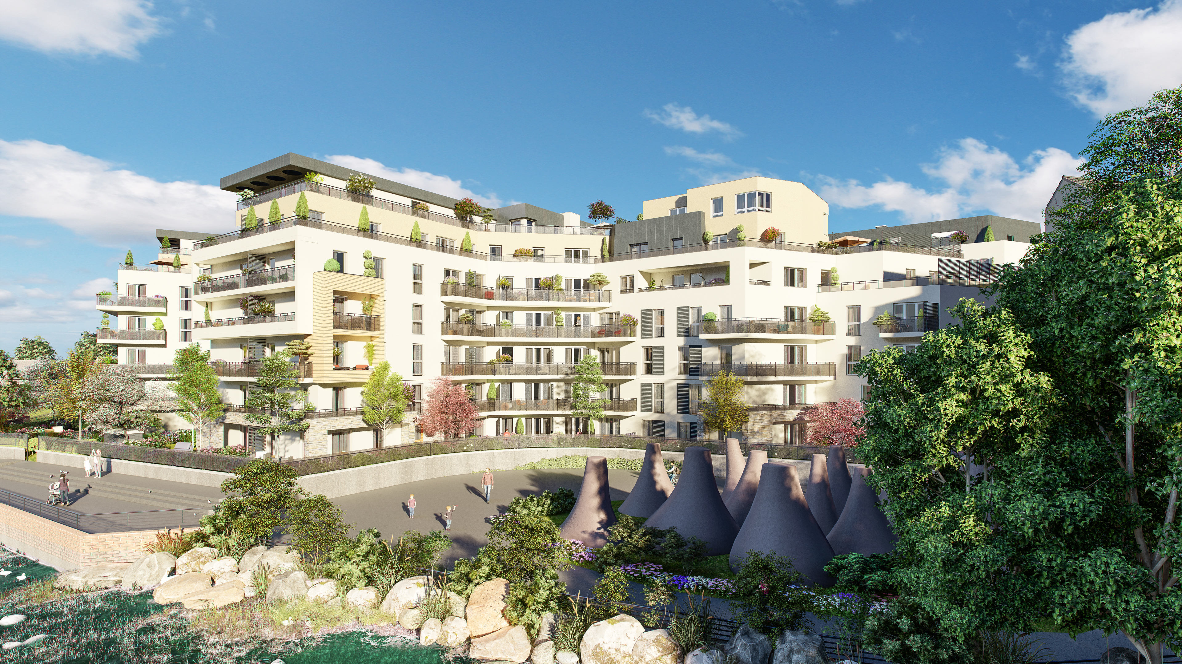En bordure de la forêt de Rougeau, la commune de Savigny-le-Temple profite d'un très bel environnement naturel, entre bois et étangs, golfs et allées cavalières, parcs urbains et fermes pédagogiques. Sa situation géographique stratégique aux carrefours de deux pôles économiques majeurs, la proximité de l'autoroute A5 et de la Francilienne ainsi que son bon réseau de transports en commun en font l'une des villes les plus importantes du Grand Paris Sud. Au quotidien, les Savigniens profite, dans un cadre de vie agréable, de nombreuses écoles, de la maternelle au lycée, de commerces, d'une offre culturelle et sportive de qualité, de deux marchés de produits frais et des centres commerciaux « Westfield Carré Sénart » et « Bois Sénart » des communes voisines. Au coeur d'un quartier en plein renouveau, à quelques pas de nombreux commerces, d'écoles, d'un stade, d'une école de danse et du superbe domaine verdoyant de la Grange-la-Prévôté, nous vous invitons à découvrir une nouvelle réalisation à l'architecture contemporaine novatrice. Idéalement tournée vers la nature environnante et le lac aux berges arborées, elle propose des appartements du studio au 4 pièces, dont des duplex, prolongés pour la plupart par des balcons, des terrasses plein-ciel et des jardins privatifs. Des places de stationnement en sous-sol et des prestations de qualité complètent avantageusement l'offre de cette superbe résidence sécurisée.